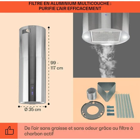- Dimensions de la hotte aspirante : env. 35 x 60 cm (ØxH)