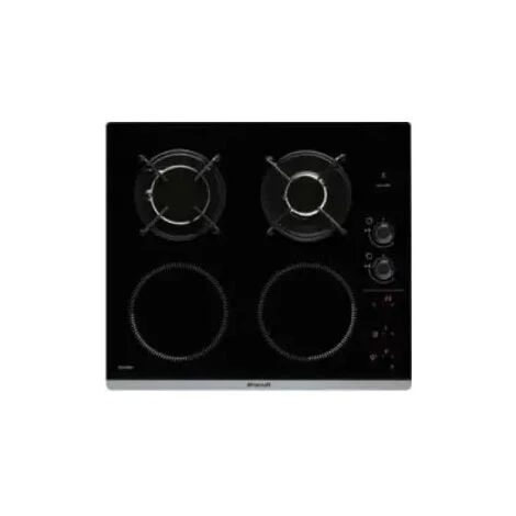 Mixte induction / gaz-4 zones-L 51 x P 58 cm-Revetement verre-Noir-9 positions de cuisson-Sécurité gaz par thermocouple-Commandes sensitives-Minuterie-Verrouillage centralisé