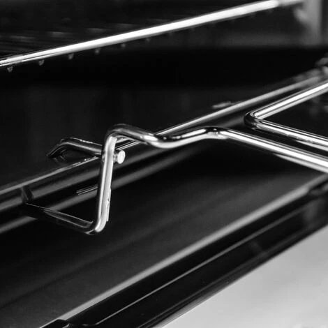 Four de table à convection en acier inoxydable ; comprend une brochette rotative pour rôtir les poulets et 2 plateaux pour préparer des pizzas, des pommes de terre au four, des toasts ou des pâtisseries incroyables.Grâce à son système de circulation d’air, qui entoure les aliments et permet d’obtenir des résultats tendres et savoureux, vous pouvez cuisiner sans huile, avec moins de graisses saturées ; vous obtenez des repas plus sains qu’en les faisant frire ou sauté.Porte en verre haute résistance qui aide à maintenir la température ; minuterie jusqu’à 60 minutes ; température réglable de 90 à 230 °c ; témoin lumineux et base antidérapante.Le bouton de fonction vous permet de choisir si vous voulez qu’il chauffe uniquement par le haut, ou de haut en bas.Comprend une plaque de cuisson, un grill, une poignée avec clip de fixation et une brochette de poulet rotative. L’extérieur laqué le rend facile à nettoyer.