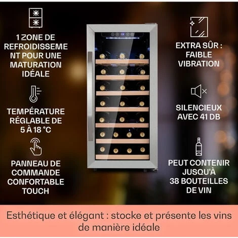 CAPACITÉ DE 38 BOUTEILLES : Rangez jusqu’à 38 bouteilles de vins et partagez-les avec vos invités. La température est contrôlée et ca aide à préserver les saveurs et les arômes, pour conserver vos vins plus longtemps