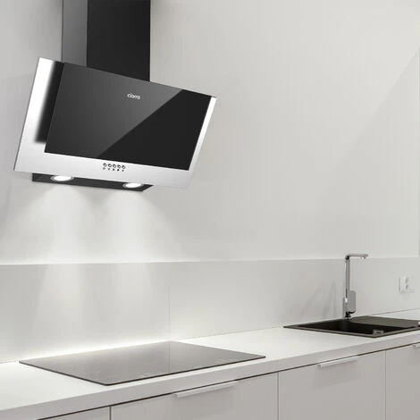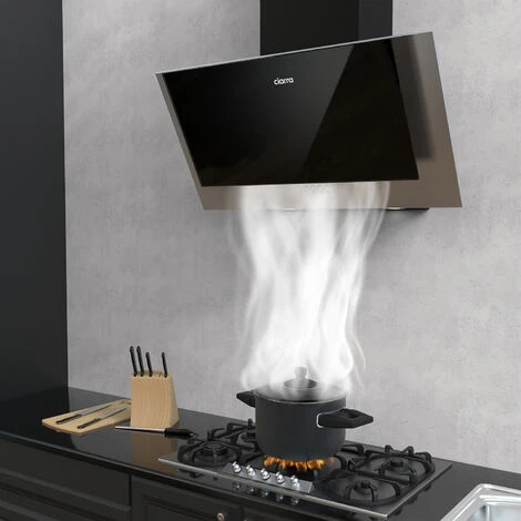 CIARRA 736CBK60 Hotte Inclinée – 60cm – 370m3/h – 2pcs filtre actif – Classe A – LED Lampe – Recyclage ou Evacuation – 3 Vitesses – Inox Verre – Noir