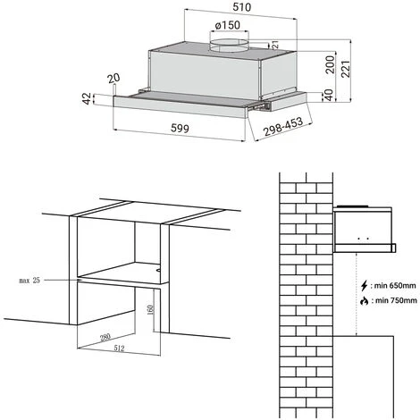 Hauteur requise au dessus de cuisinière électrique : 65cm