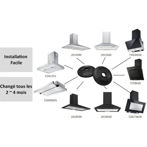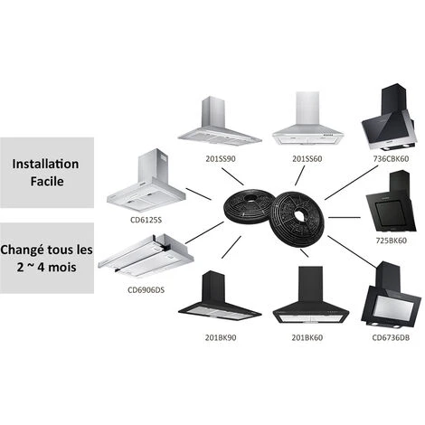 - 3. Grace au charbon actif, le filtre absorbe efficacement les graisses et les odeurs de cuisson.