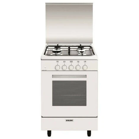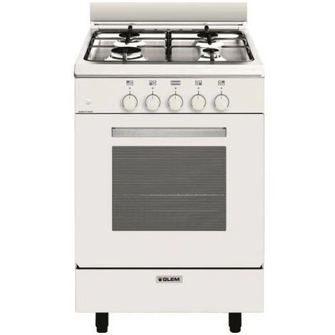 Cuisinière gaz – Four gaz – Gril gaz 2 kW – Cavité émail lisse Titanium : la faible porosité de l’émail en facilite le nettoyage – Porte 2 vitres avec vitre intérieure démontable – Contre-porte plein verre – Eclairage – Table de cuisson en inox – 4 brûleurs gaz dont 1 rapide 3 kW – Sécurité gaz par thermocouple – Grilles émaillées mates – Couvercle verre amovible – Pieds réglables en hauteur.