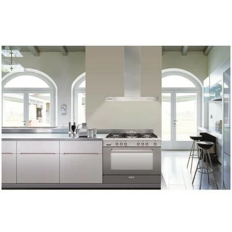 Piano de cuisson – Four gaz – 3 modes de cuisson dont Gril + tournebroche – Gril électrique 2 kW – Minuteur sonore 60 minutes – Allumage électronique »bouton » – Eclairage – Panneaux catalytiques autonettoyants – Gradins fils – Contre-porte plein verre avec verre démontable – Porte 2 vitres – Tournebroche – Allumage de la table électronique »bouton »- 5 brûleurs dont 1 triple couronne 3,8 kW – Sécurité gaz par thermocouple – Grilles fonte – Départ de crédence – Coffre de rangement chauffe-plat – Plinthes cache-pieds noires de série – Ventilateur tangentiel aspiré : l’air chaud du four est rejeté sur l’arrière, pas de souffle d’air en façade – Homologué pour être encastré entre deux meubles de cuisine, selon la norme UNI EN 30-1-1 classe 2 – Finition inox.