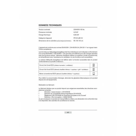 Type de four : Electrique