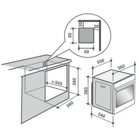Dimensions Encastrement (LxHxP) : 56 x 58,5 x 55 cm.