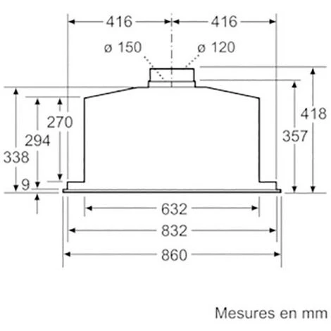 Diamètre du réducteur d’évacuation d’air (mm) : 150/120