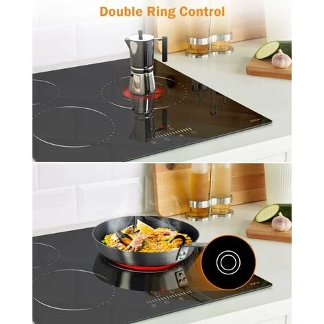 Table de cussion vitrocéramique dispose d’un total de 3 zones de cuisson avec une puissance totale de 5200 W, vous aidant à cuisiner rapidement. Chaque zone de cuisson a 1 à 9 niveaux de réglage de la puissance, Vous pouvez régler la puissance optimale pour la cuisson en fonction des différents besoins de cuisson. La commande à double anneau vous permet de régler librement la zone de cuisson.