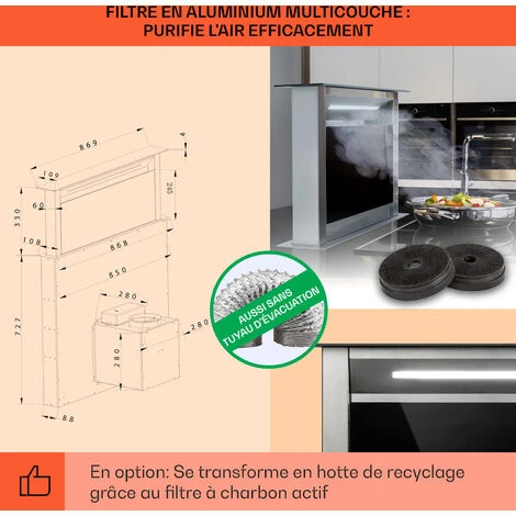 EFFICACITÉ DE CLASSE A+ : Notre hotte aspirante assure un flux d’air puissant tout en maintenant l’efficacité. Reconnu avec un classement d’efficacité énergétique A, cet extracteur de cuisine réduit le coût énergétique, sans sacrifier la puissance.