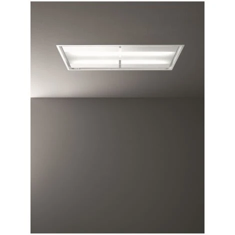 Hotte plafond moteur sans moteur 140 cm – Aspiration périmétrale / Débit d’air allant de 800 m3/h à 1500m3/h selon le moteur / LED à température réglable – Télécommande incluse – Classe énergétique C / Fonctionne en évacuation ou en recyclage – Finition verre trempé