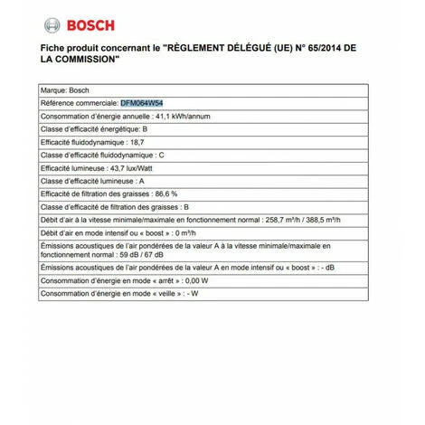Consommation d’énergie annuelle (AEC hotte) en kWh/an : 41.1