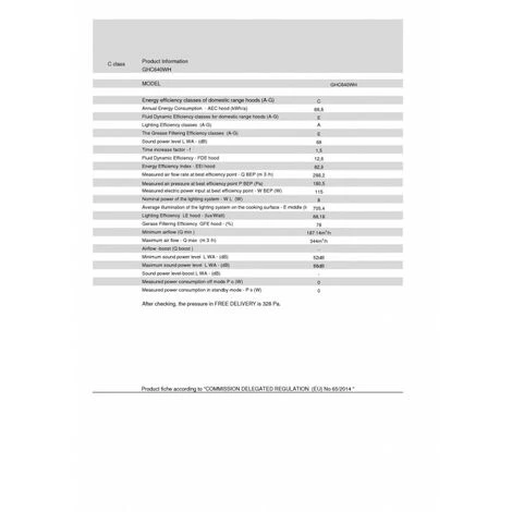 Consommation d’énergie annuelle (AEC hotte) en kWh/an : 68.8