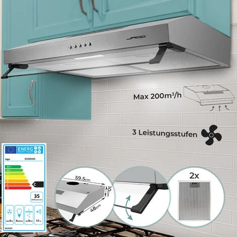 Profitez pleinement de vos expériences culinaires dans une atmosphère d’air frais avec notre hotte aspirante classique en acier inoxydable. Trois niveaux de vitesse permettent une cuisson sans odeur, chaque intensité dépendant de la façon dont vous préparez les aliments. Cette hotte peut être utilisée soit pour la recirculation interne – l’air passe à travers un filtre à charbon actif, est nettoyé et redirigé vers la cuisine – soit pour l’évacuation externe – les odeurs et les vapeurs de cuisson sont simplement dirigées vers l’extérieur à l’aide d’un air duct (n’est pas inclus).