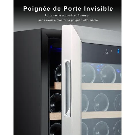3.Élégante design: Grâce au cave à vin avec porte en verre trempé inox brossé et poignée inox, vos précieux vin rosé, blanc et pétillant à bonne sont merveilleusement mis en scène et présentés.