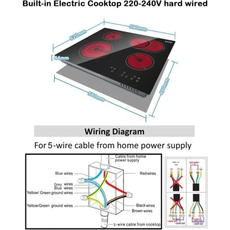 - Table de cuisson en céramique intégrée, 220-240v câblée (Hard Wired)