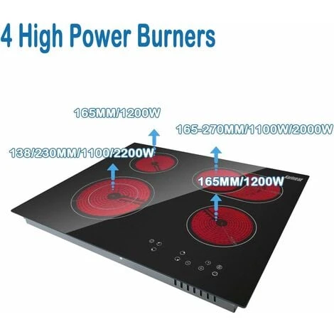 Karinear Plaque de cuisson en céramique encastrable 4 foyers avec technologie à infrarouge lointain pour chauffage. Ceci est non seulement très économe en énergie, mais rend également la cuisson plus facile et plus rapide.