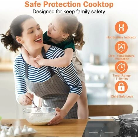 - 【Protection Multiple】 Performances de haute sécurité. Notre Plaque à Induction est livrée avec d’excellentes protections pour assurer la sécurité de toute votre famille, telles que : arrêt automatique, indicateur de chaleur résiduelle, protection contre la surchauffe, fonction de sécurité enfants.