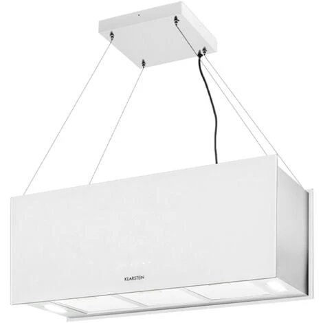 L’aspect extérieur de la hotte pour ilot Klarstein Kronleuchter XL est élégant avec son design Pure Ambience.La face avant et arrière sont revêtues d’un luxueux verre de sécurité blanc, tandis que les côtés sont en inox brossé.