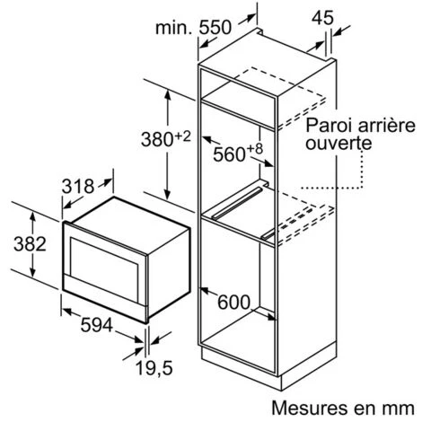 Dimensions du produit (mm) : 382 x 594 x 318