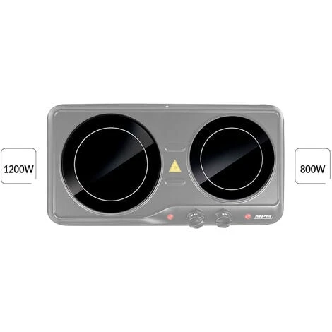 - 2 Feux : Il dispose de 2 plaques chauffantes en vitrocéramique de 19 et 16,5 cm de diamètre sur lesquelles vous pouvez utiliser des poêles et des casseroles de presque tous les matériaux, fonte, aluminium, acier inoxydable…