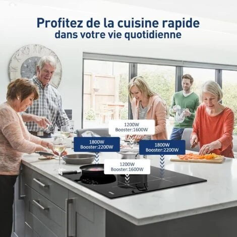 - Plaque Induction 4 Zones, Table de cuisson induction 4 foyers avec Booster