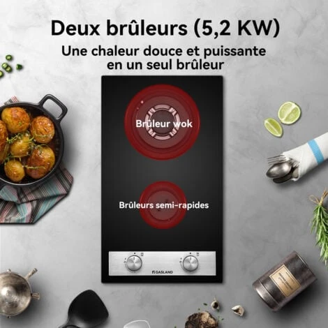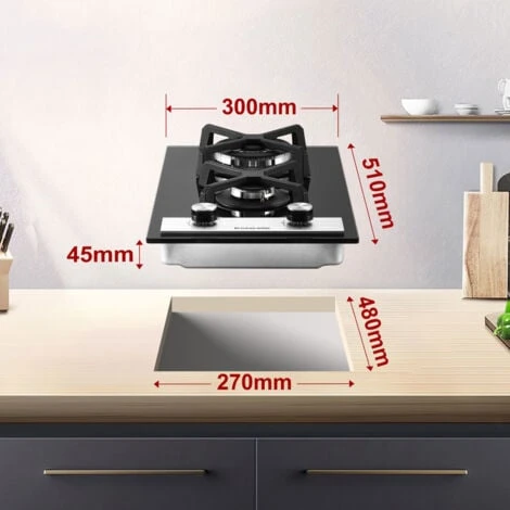 30 cm Plaque de cuisson à gaz en verre 2 feu