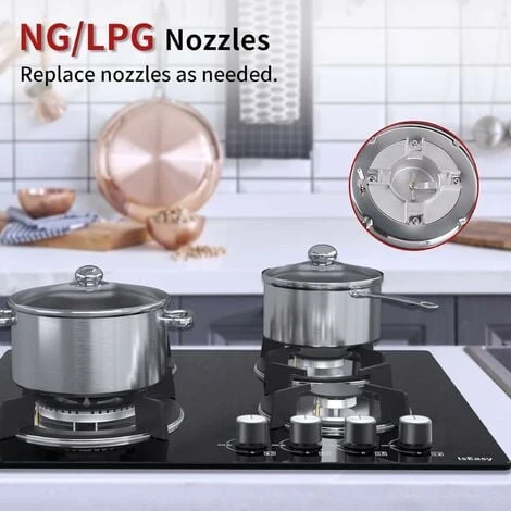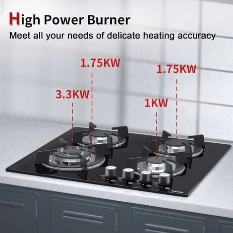 - 【4 feux Plaque gaz en verre】:Encastrable Conception – Panneau en verre trempé, épaisseur 8 mm – Facile à nettoyer.