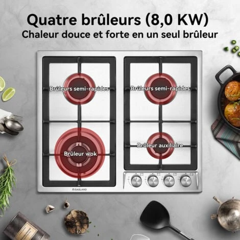 Gasland Chef inox Plaque de cuisson à gaz 60 cm 4 feux