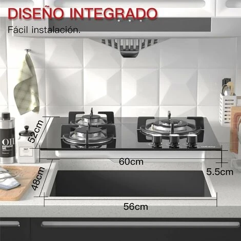 - 【3 feux Plaque gaz en verre】:Encastrable Conception – Panneau en verre trempé, épaisseur 8 mm – Facile à nettoyer.