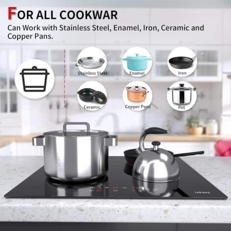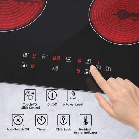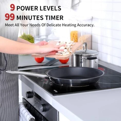- Serrure sûre, la table de cuisson éteint automatiquement lorsque la température du poêle dépasse le niveau de sécurité, avec Verrou de sécurité pour enfants, parfait pour famille