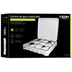 EDM EDM Cuisinière à Gaz 4 Feux – Camping – Blanc – 50x50x12cm