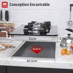 AREBOS Table De Cuisson à Gaz – Inox – 5 Brûleur – 70 Cm – Verre