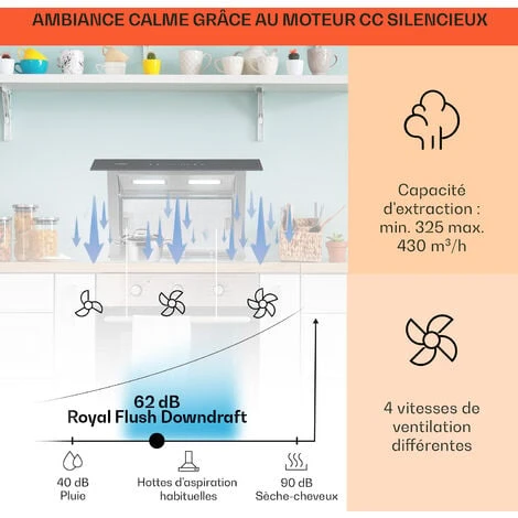 Performance optimale : 430 m³/h de puissance d’aspiration éliminant les odeurs désagréables en un tour de main