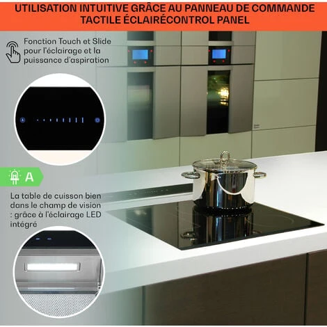 ILLUMINEZ VOTRE CUISINE : Notre hotte aspirante pour cuisine est dotée de 8 niveaux d’éclairage différents pour illuminer votre cuisine. Une minuterie d’arrêt de 40 minutes garantit qu’elle ne fonctionne jamais une fois la cuisson terminée.