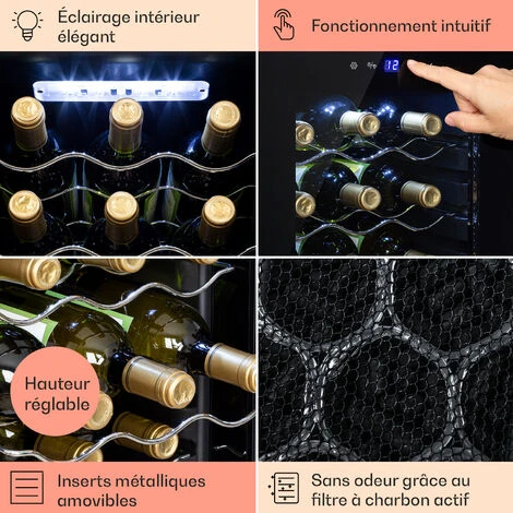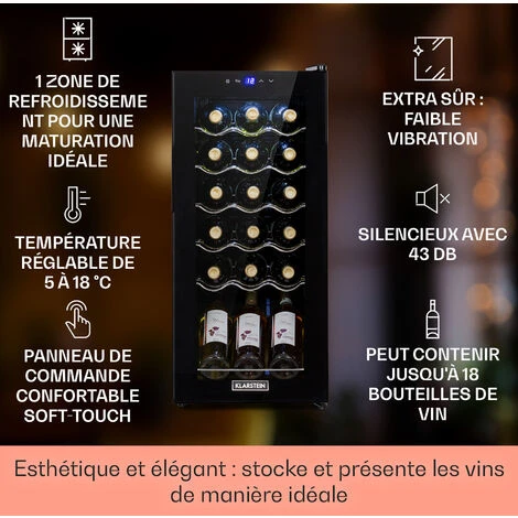 PRÉSENTATION ÉLÉGANTE DES VINS : En plus de sa porte en verre, la cave à vin Klarstein est doté d’un cadre en acier inoxydable brossé, un éclairage intérieur et un espace pour le champagne pour être pratique au quotidien.