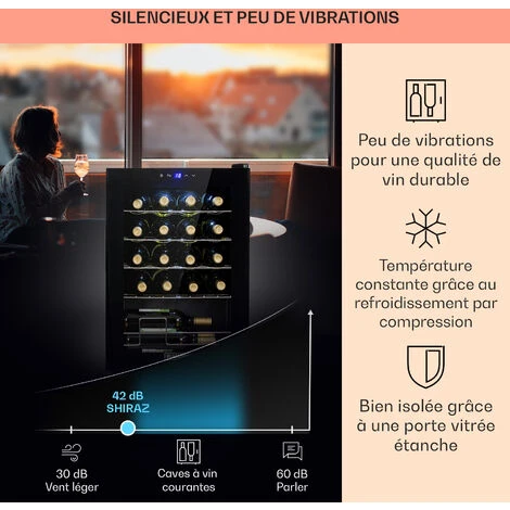 Pour l’amour du vin : la cave à vin Klarstein Shiraz 20 Slim Uno garantit le meilleur plaisir du vin en conservant les bouteilles à la bonne température de consommation. Elle brille par son design fin et s’insère merveilleusement bien dans les petits espaces. Conservez jusqu’à 20 bouteilles de vin de manière optimale à une température de dégustation comprise entre 5 et 18 °C. La porte en verre de sécurité vous permet de présenter les bouteilles de manière magnifique.