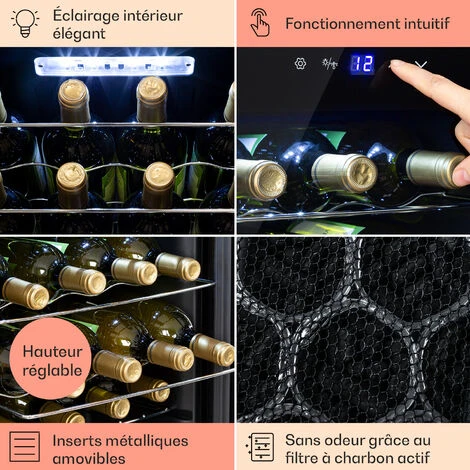 PRÉSENTATION ÉLÉGANTE DES VINS : En plus de sa porte en verre, la cave à vin Klarstein est doté d’un cadre en acier inoxydable brossé, un éclairage intérieur et un espace pour le champagne pour être pratique au quotidien.