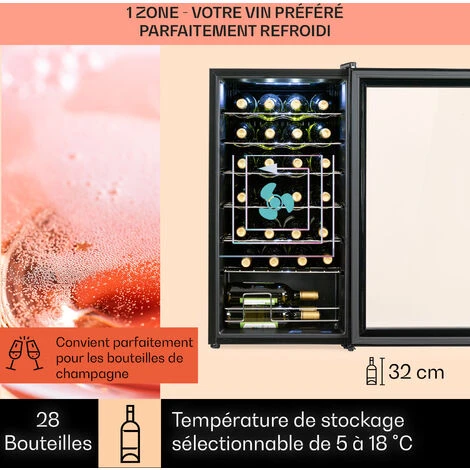 PRÉSENTEZ VOTRE COLLECTION DE BOUTEILLES : Cette cave a vins a une capacité de 28 bouteilles, ce frigo à vin a également une température contrôlée pour préserver les saveurs et les arômes des vins et conserver ainsi vos bouteilles plus longtemps.