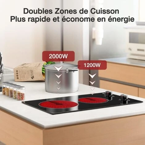 - Table de cuisson encastrable, Vitrocéramique 2 foyers, Plaque Vitrocéramique 2 zones