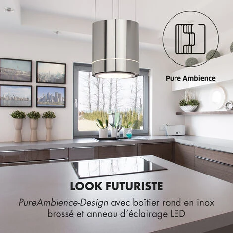 Look futuriste : design PureAmbience avec boîtier rond en inox brossé et anneau d’éclairage LED